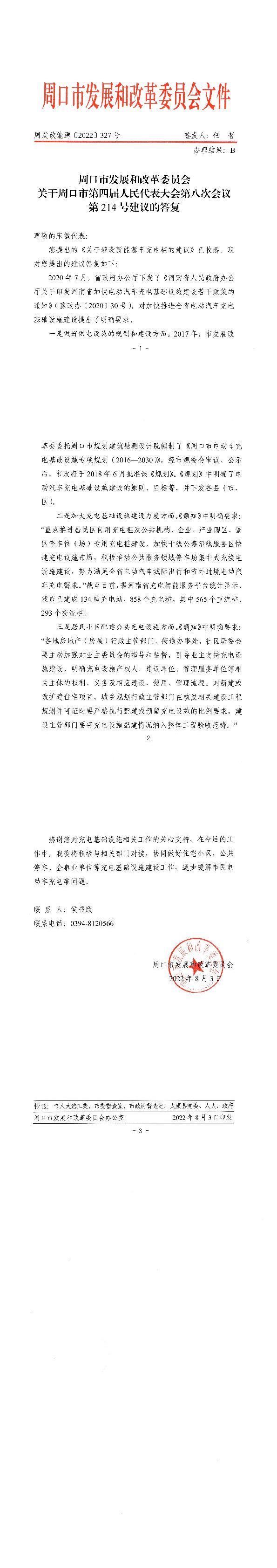 周口市发展和改革委员会关于市四届人大第八次会议第214号建议的答复