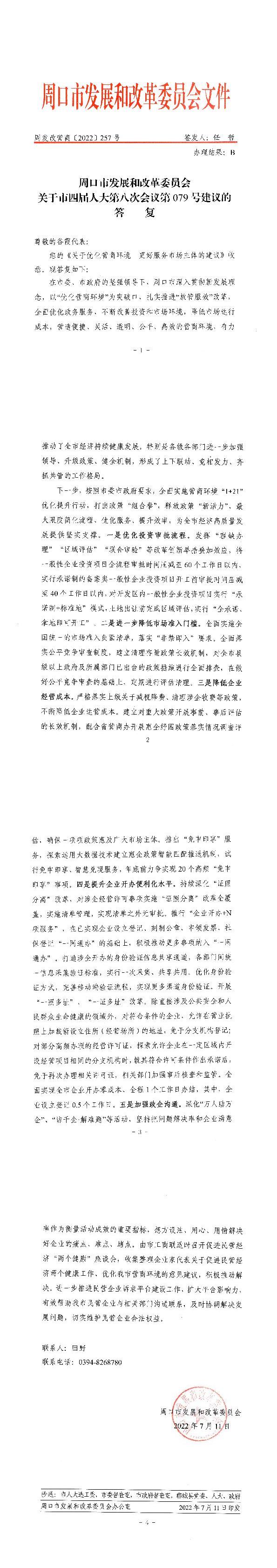 周口市发展和改革委员会关于市四届人大第八次会议第079号建议的答复