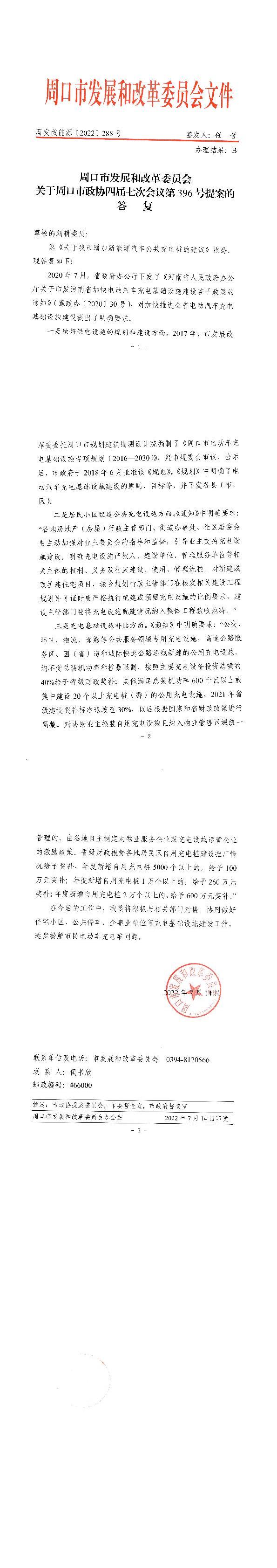 周口市发展和改革委员会关于周口市政协四届七次会议第396号提案的答复