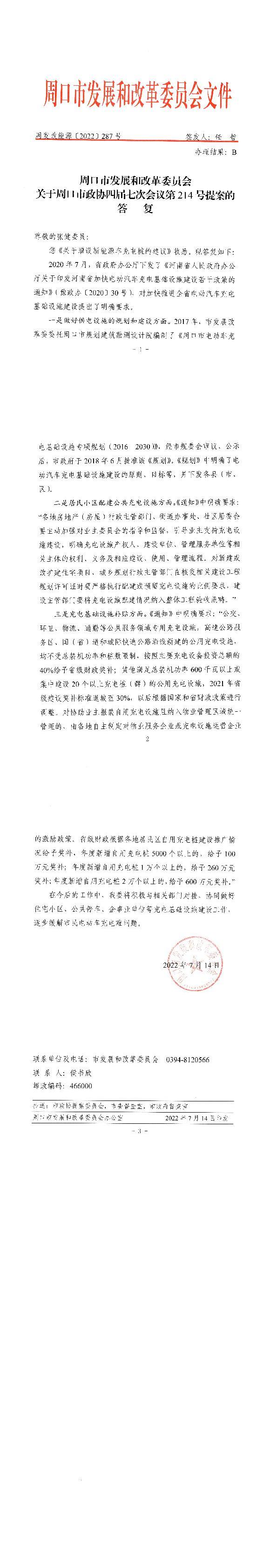 周口市发展和改革委员会关于周口市政协四届七次会议第214号提案的答复