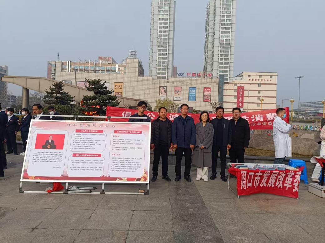 为进一步推进社会信用体系建设,营造诚信经营、放心消费的市场环境,周口市有关科室在五一广场开展了以“凝聚诚信力量,共筑消费新环境”为主题的3、15社会信用体系建设宣传活动。