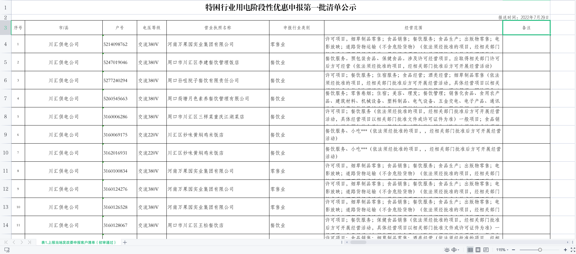 周口市发展改革委关于特困行业用电阶段性优惠申报第一批清单公示.xls