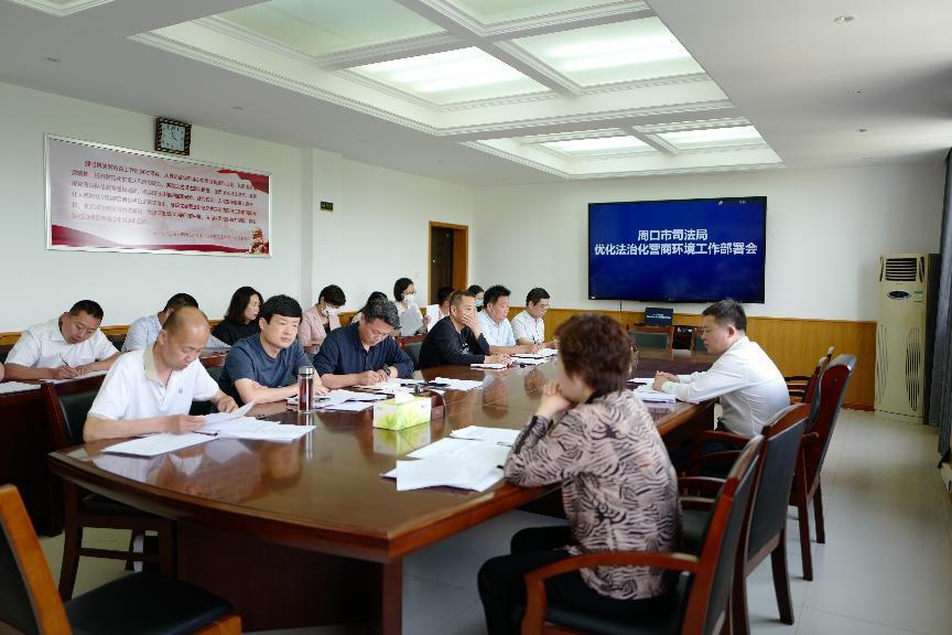 为全面深入学习贯彻党的二十大精神,进一步优化法治化营商环境,6月1日,周口市司法局党组书记、局长孔德高主持召开优化法治化营商环境工作推进会,听取前期工作进展,并安排部署下一步工作任务。市司法局党组成员、政治部主任周文超出席会议,机关各科室和二级机构负责人参加会议。
